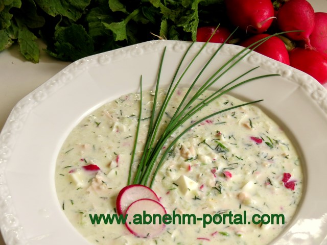 Bei so einem heißen Wetter kann man oft nichts Belastendes essen, darum sind Kaltschalen oder so eine russische Suppe ideal. Sie ist natürlich wieder aus dem www.abnehm-portal.com, wo eine große Rezeptdatenbank auf Euch wartet.