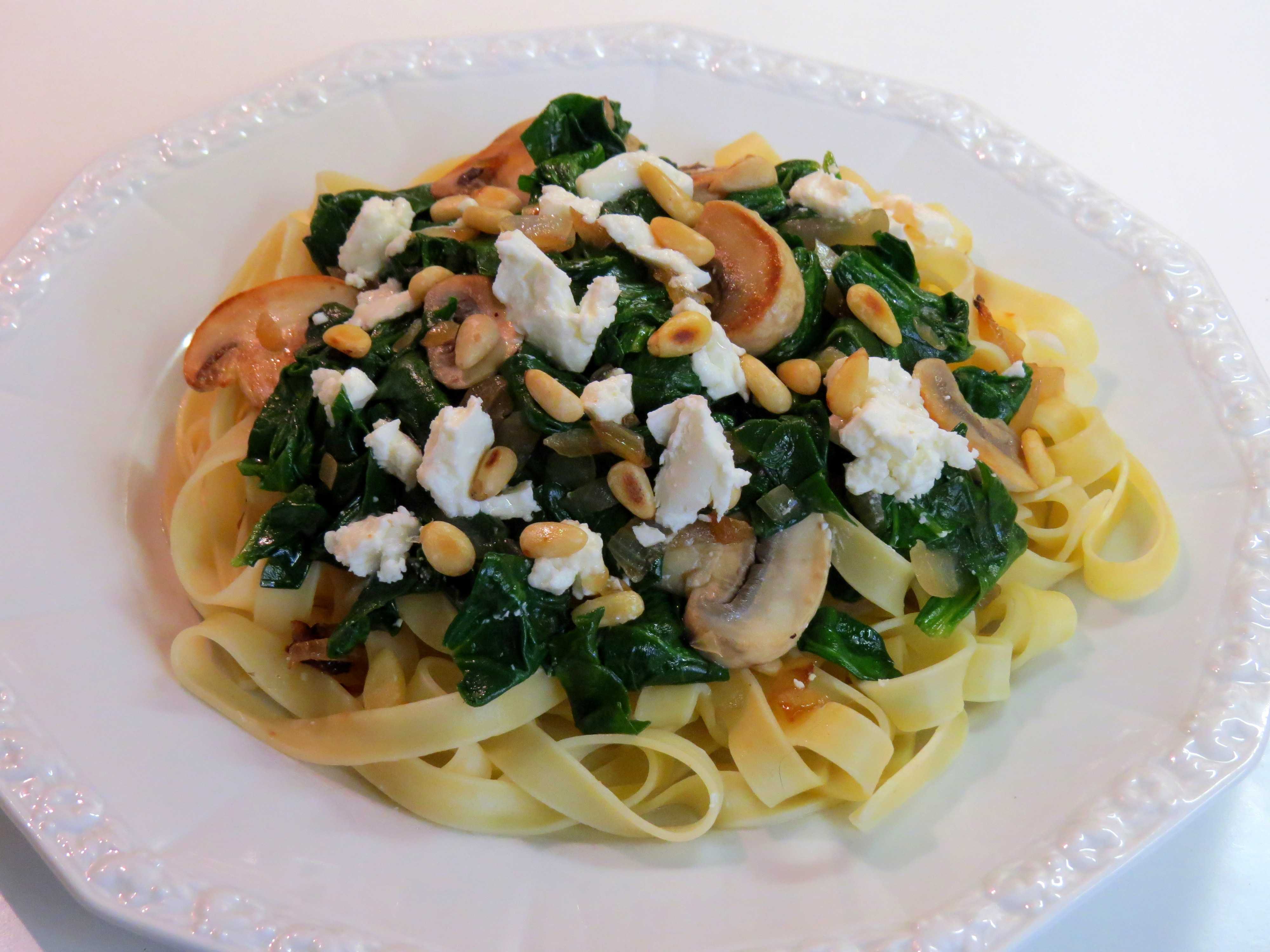 Pilz-Spinatnudeln mit Schafskäse